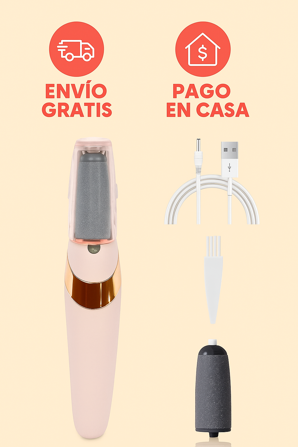 Transforma tu rutina de cuidado personal con DermixPro, el removedor eléctrico diseñado para eliminar callos, durezas y piel muerta de manera rápida, segura y sin esfuerzo. Su motor de alto rendimiento ofrece potencia constante sin depender de pilas, mientras que su diseño ergonómico garantiza un manejo cómodo y preciso en todas las áreas del pie.