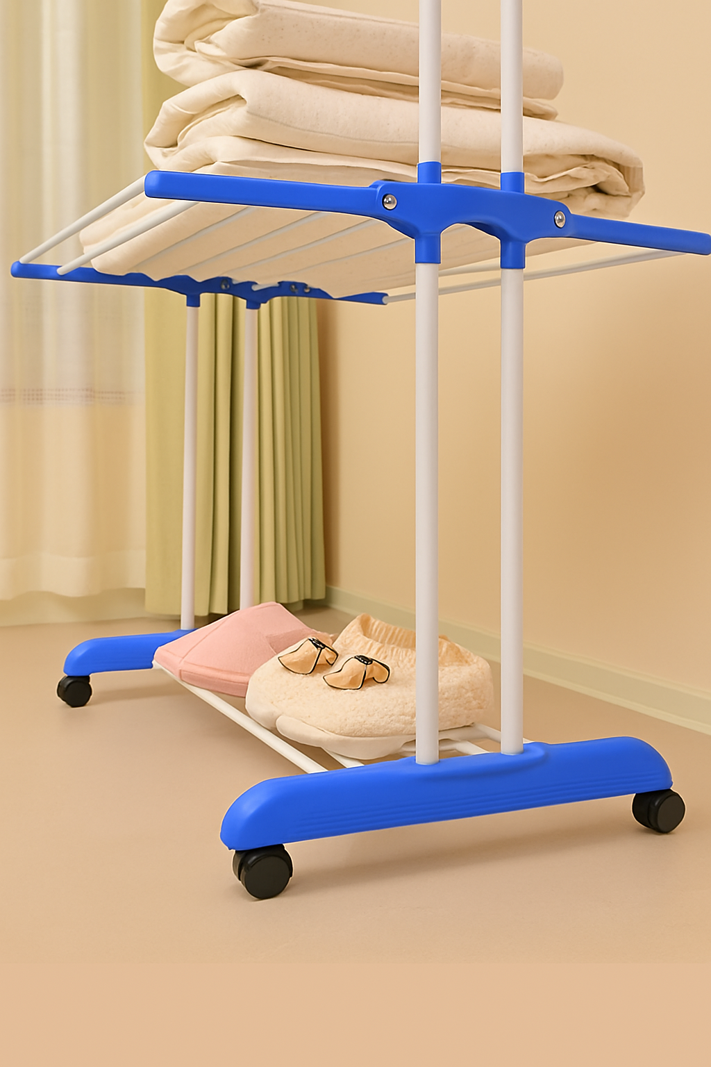 Fabricado en acero y PP de alta resistencia, brinda firmeza y estabilidad, ideal para grandes cargas de ropa.